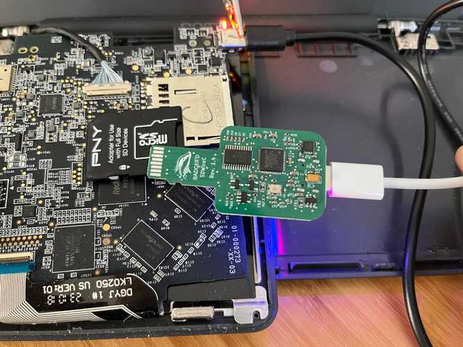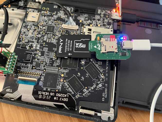 The Badgerd SDWire allows one SD card to be used on two systems without physically swapping it, one over USB and one over MMC
